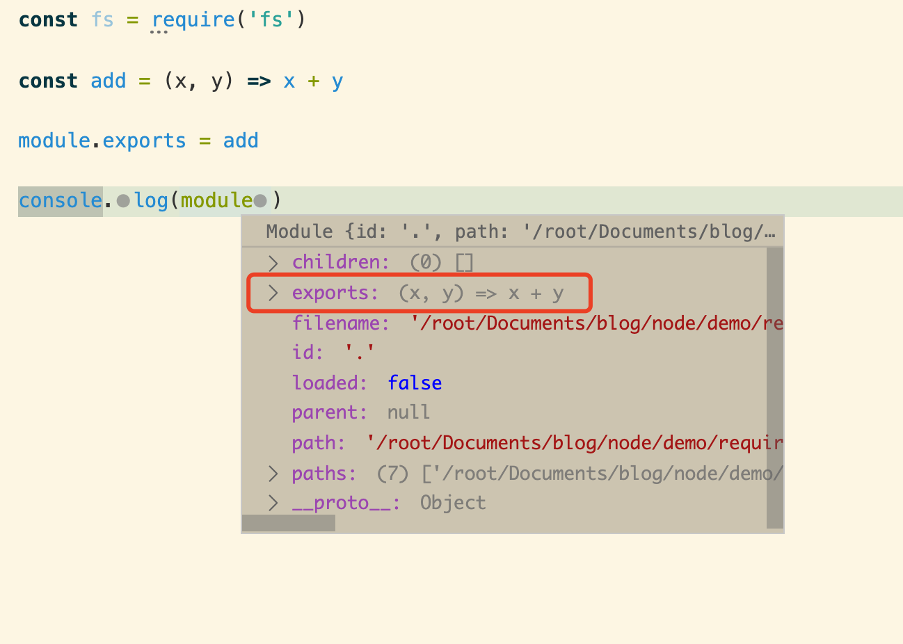 调试最好的办法就是打印,我们想知道 module 是何方神圣,那就把它打印出来!